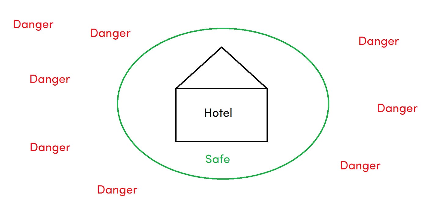 Initially, I feel safe and comfortable inside the hotel or Airbnb and everywhere else feels like “danger danger”.